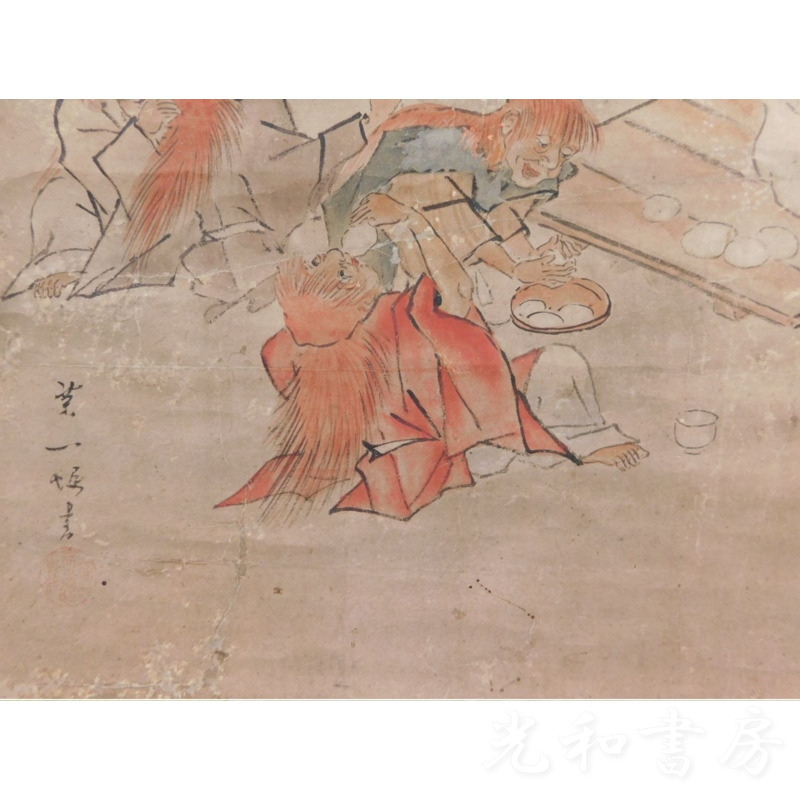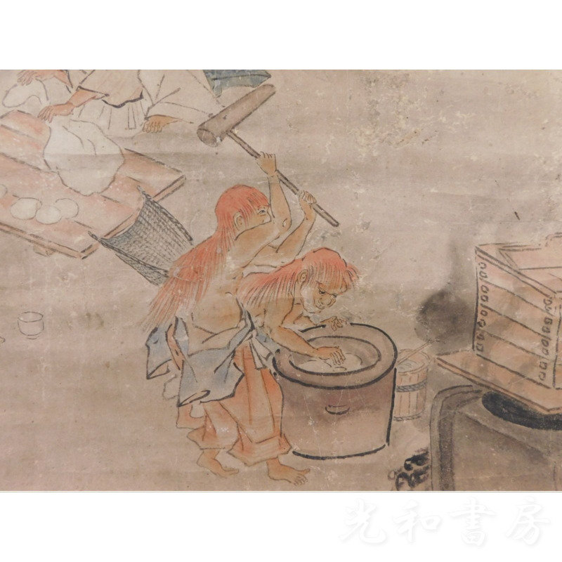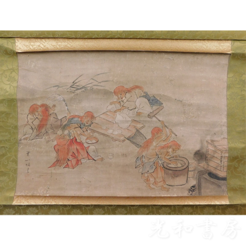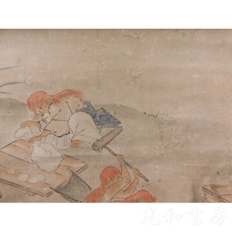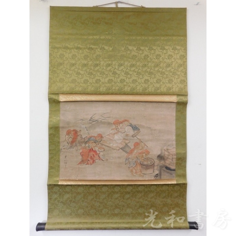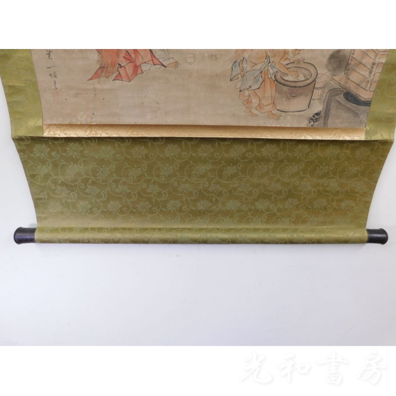 「掛軸 一堀寫 餅搗圖」1幅
