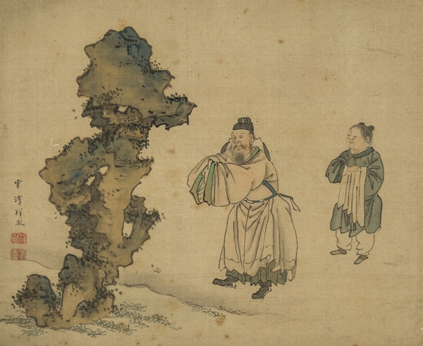 鏑木雲潭筆「米芾拝石図」 江戸時代