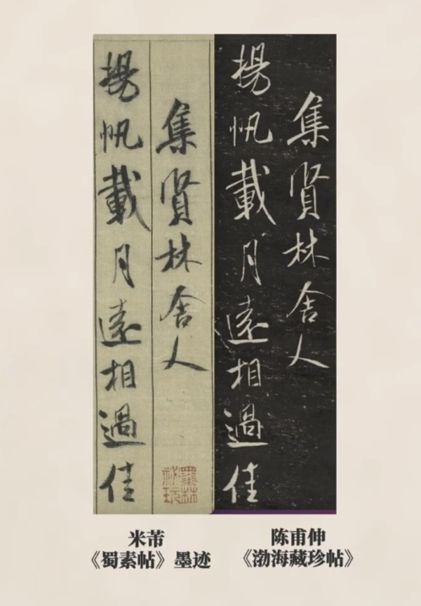 しかし、当時の刻工の立場からすれば、名家の作品を勝手に書き換えることは、解雇(クビ)に値するほどの暴挙です。刻工の視点を借りれば、彼らの仕事は「コピー」と同じであり、主人の許可なく細部を変更することは考えにくいとされています。実際、後に『蜀素帖』の墨跡を入手した陳瓛(ちんかん)の息子、陳甫伸(ちんほしん)が制作した『渤海蔵真帖(ぼっかいぞうしんじょう)』は、驚くほど墨跡本に忠実です。