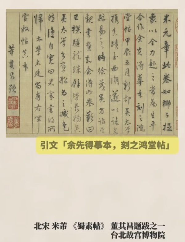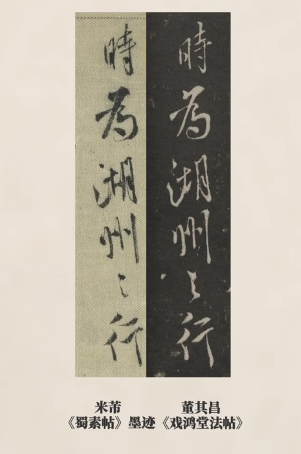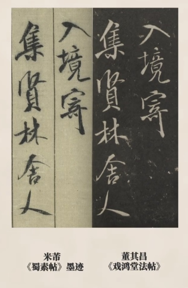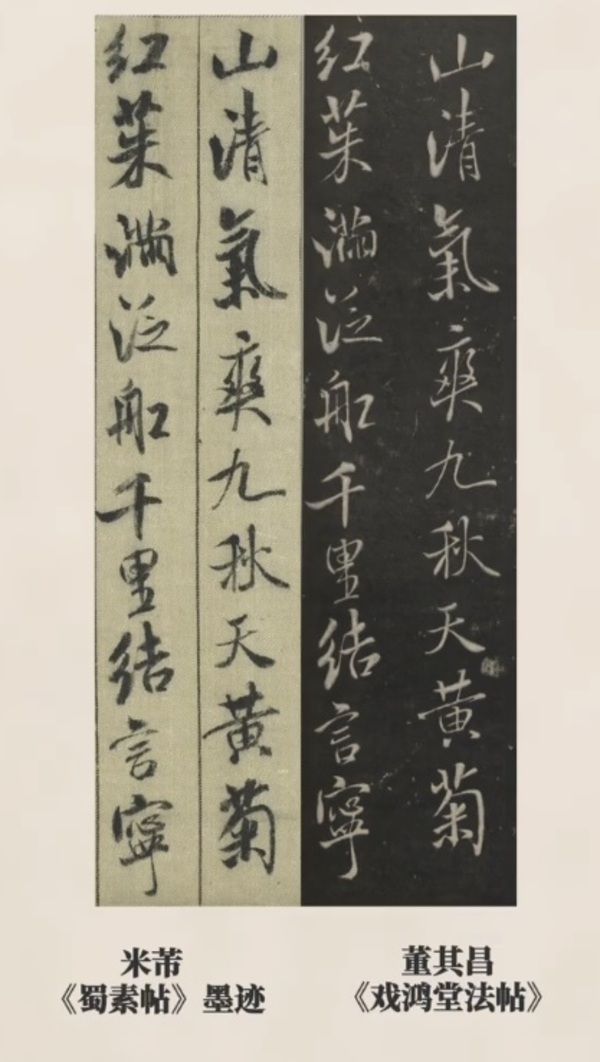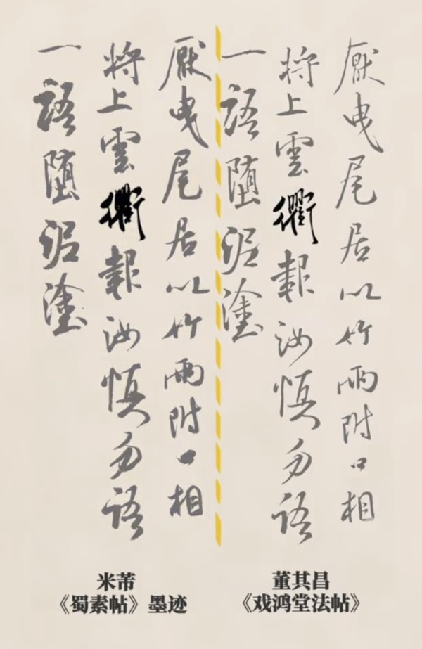 まず、台北故宮博物院に所蔵されている米芾の『蜀素帖』墨跡本と、明代の文人・董其昌(とうきしょう)が編纂した『戯鴻堂帖(ぎこうどうじょう)』に収録された刻帖を比較してみましょう。