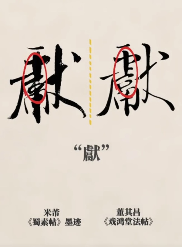 なぜ複製の方が「綺麗」に見えるのでしょうか? 一つの可能性として、腕に自信のある刻工(彫り師)が、米芾が書き損じたと思われる部分や、細すぎる線を自らの判断で「修正」したのではないかという疑問が浮かびます。例えば、米芾が書いた短い横線を、刻工が「点」だと思い込んで勝手に分けて刻んだり、気に入らない筆致を修正したりした可能性です。