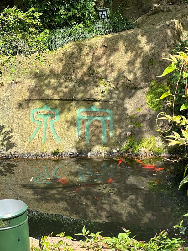 西泠印社のメインスポットのすぐ傍らにあるのが「文泉」です。この泉は、四泉の中で唯一「元々そこにあった古い泉」であり、他の3つは後世に人工的に掘り当てられたものです。 「文泉」の二字は兪樾(ゆ えつ)の筆によるもので、その歴史の重みを静かに伝えています。