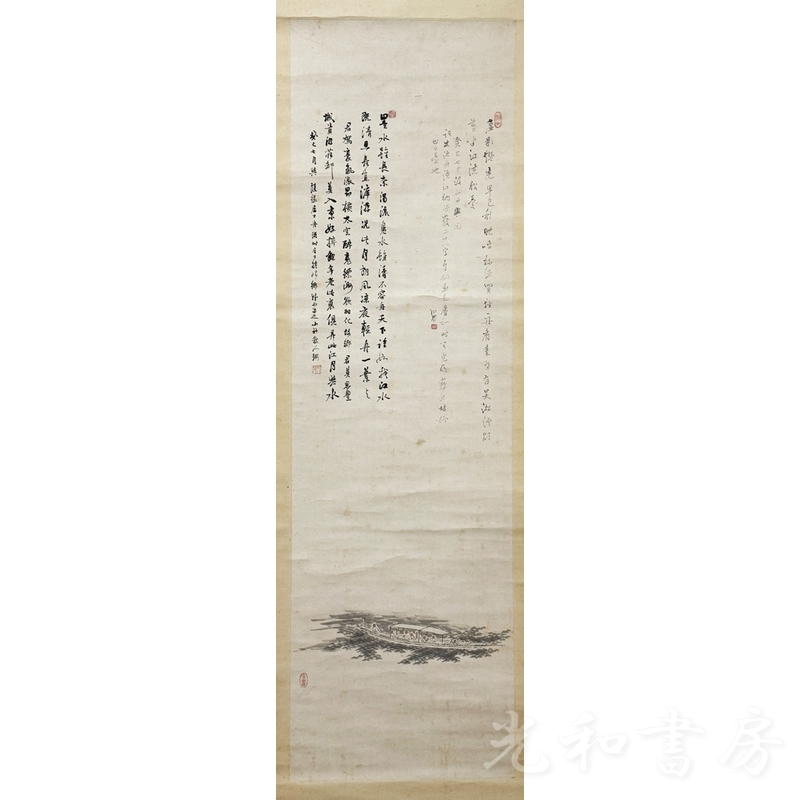 本紙サイズ約31×103cm。シミ。木箱。 発送は佐川急便、全国(離島を除く)900円〜です。海外発送も対応致します。現品確認を希望される場合、ご連絡を頂いた上、対応致します。(事務所営業のため)