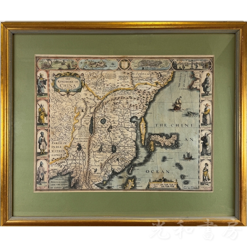 手彩、額装入(70×60cm)。英語で作成された最初の中国・日本・韓国の地図とされています。