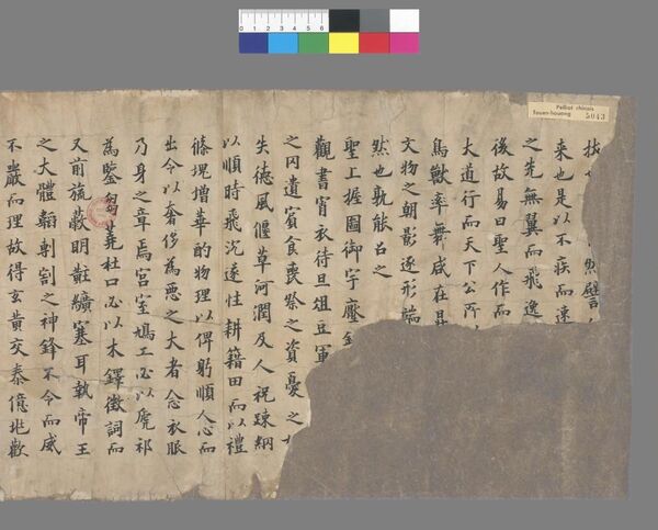 現在、フランス国立図書館に所蔵されている番号P.5043『古文四十六行』残巻(通称:『欧陽詢敦煌遺書』)がそれです。