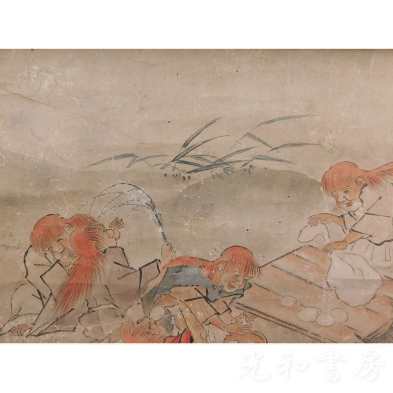 「掛軸 一堀寫 餅搗圖」1幅