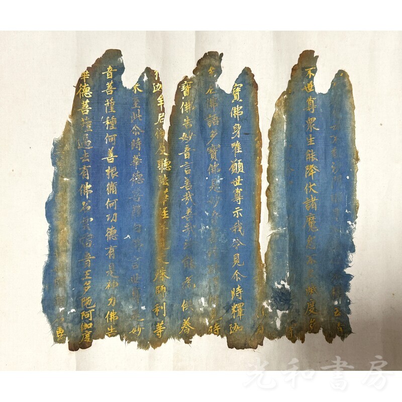 紺紙銀泥焼経 妙法蓮華経十二行断簡